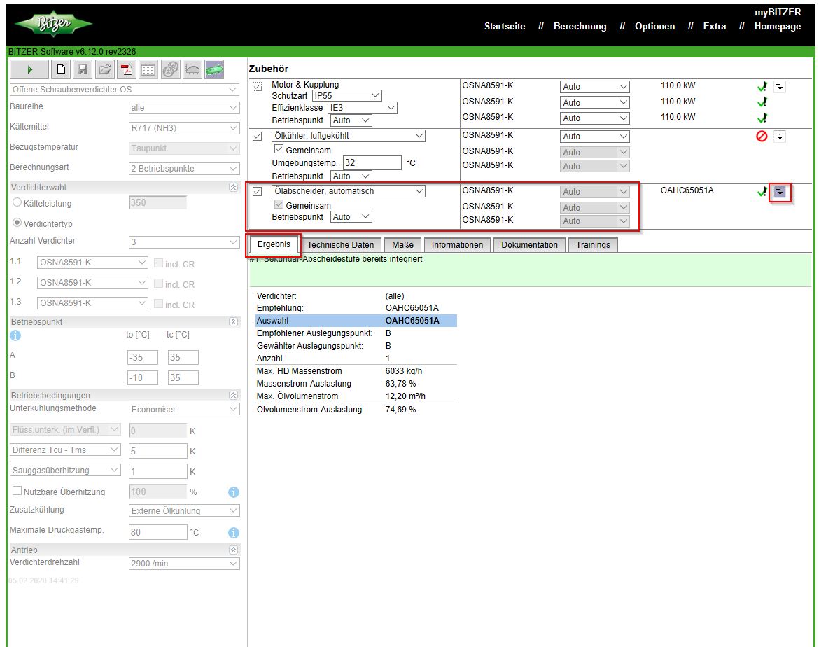 Die BITZER SOFTWARE errechnet die optimale Kombination für die gewählten Verdichter und die gewählte Anwendung automatisch. Einzelne Parameter wie horizontal, vertikal, Betriebspunkt