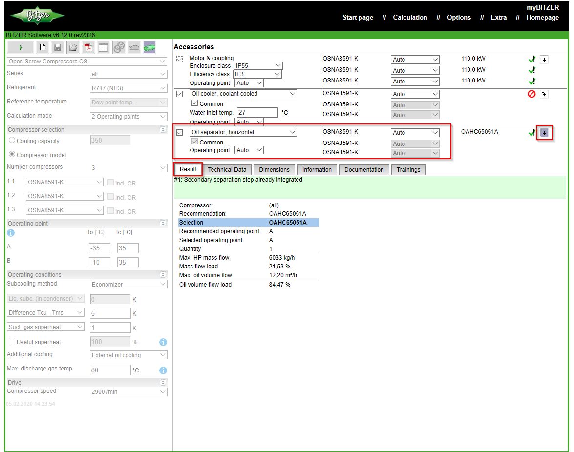 BITZER SOFTWARE will automatically calculate the optimum combination for the selected compressors and the selected application. Individual parameters, such as Horizontal, Vertical, Operating point
