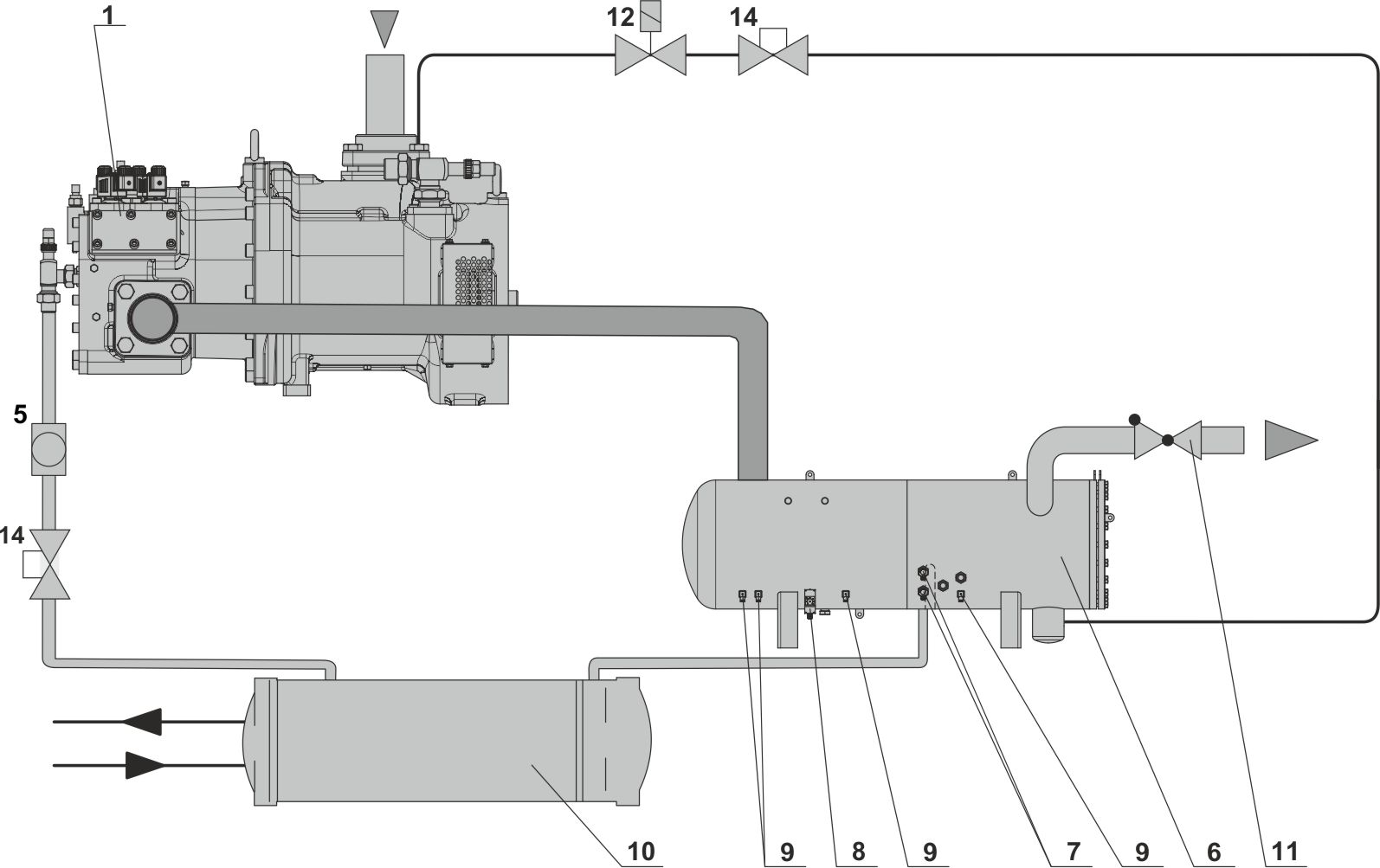 13 | Secondary oil separator (the only oil separator for reciprocating compressors) |